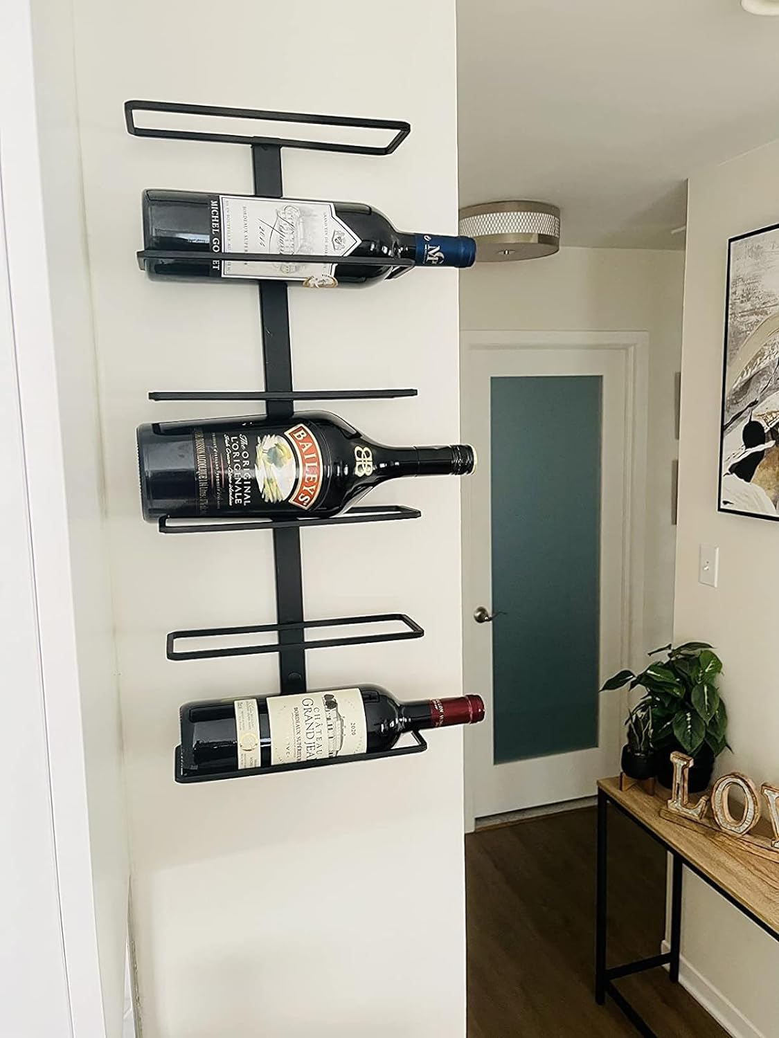 6bottle trent wall mounted wine rack with powder coated finishment.